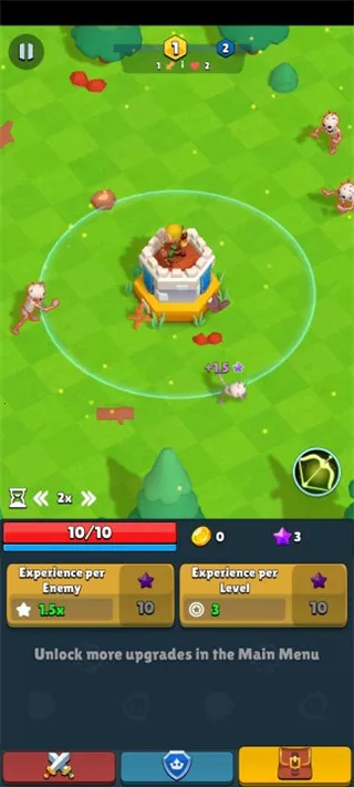 2、在这个魔法世界中,你需要不断的击败邪恶的怪物,并通过升级弓箭手的攻击伤害,击败更加强大的怪物;