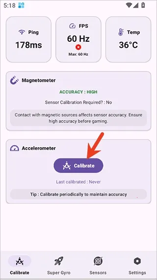 2、进入设置界面,找到陀螺仪校准选项,对您的设备传感器进行精确校准
