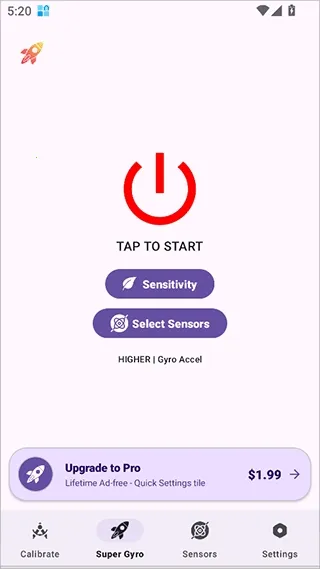 1、下载并打开Super Gyro App,确保授予所需的传感器权限