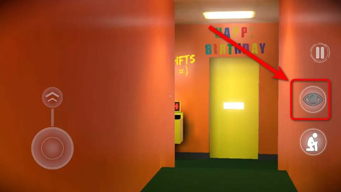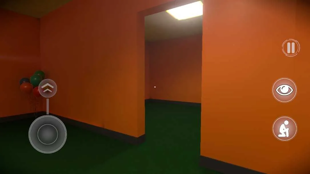 游戏操作也不难,点击 PLAY 开始,左边摇杆控制行动和跑步,右方眼睛按键找隐藏秘密,下蹲躲避怪物,暂停按键可随时暂停或重新开始。快来开启这场刺激的冒险之旅吧!