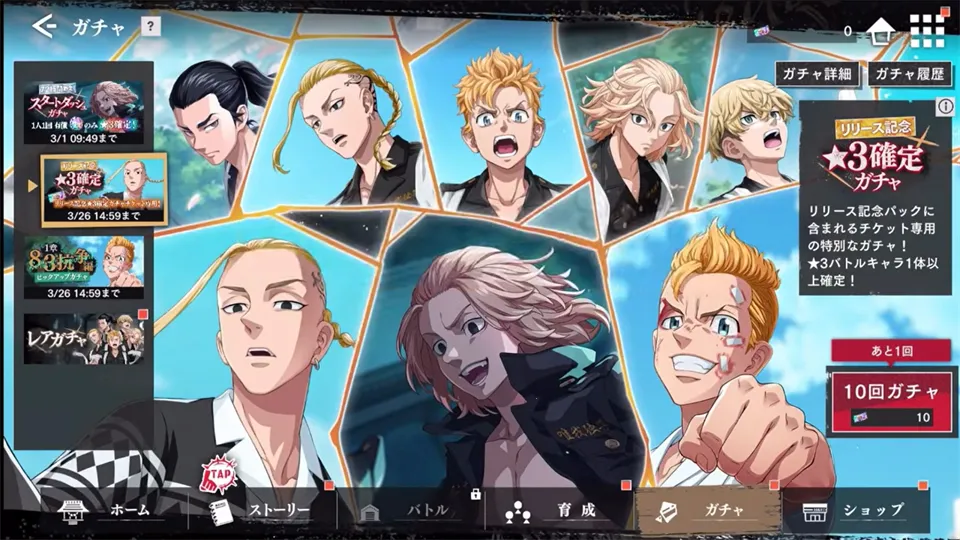 游戏角色丰富且各具特色。像佐野万次郎,拥有强大队长技能,能大幅强化全体友军;龙宫寺坚战斗技能多样,输出卓越;松野千冬具备回复能力,通关价值高。扭蛋机制也较为完善,不同类型满足玩家不同需求。无论是常驻扭蛋、限定扭蛋,还是开局冲刺扭蛋等,都有各自的特点。总之,它为漫改手游爱好者提供了一场精彩的热血冒险,值得一玩。