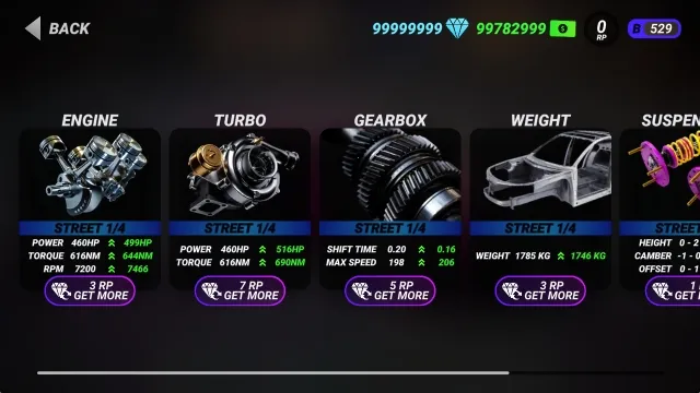 3. 改装系统:能在车库挑选喜欢的车购买,还可更换喷漆、调整部件细节、升级配件。