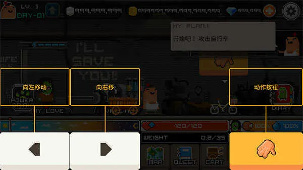 2、点击左右箭头可以移动人物,点击动作按钮就是攻击;