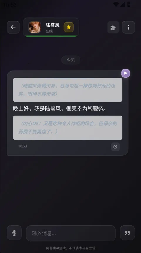 1、千人千面角色定制,用户可通过 40 余项人格维度滑块背景故事编辑器对话风格模板,打造完全符合个人情感需求的专属 AI 伙伴。