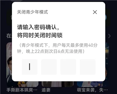 4、在青少年模式下,每天只能使用40分钟,晚上十点到次日六点无法使用。