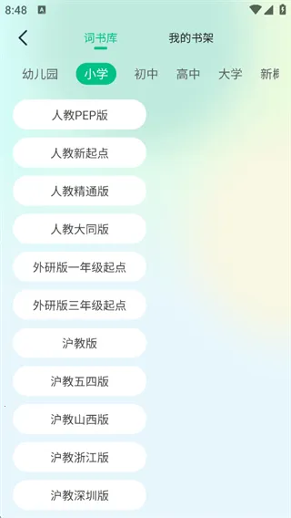1、海量词书全兼容,涵盖校内外多种,紧跟新课标更新。