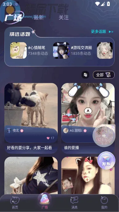 3、广场话题超丰富,热门讨论任你参,同好伙伴轻松找。