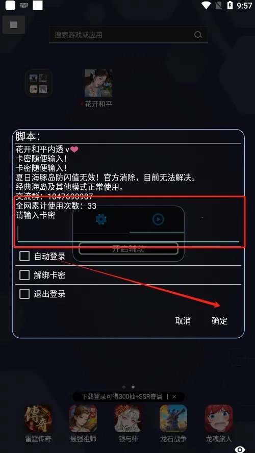 5、随便输入卡密,点击登录。
