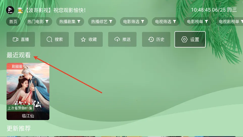 3.直接游客登录,无需注册,开始畅享各种影视内容!历史观看就在主页面。